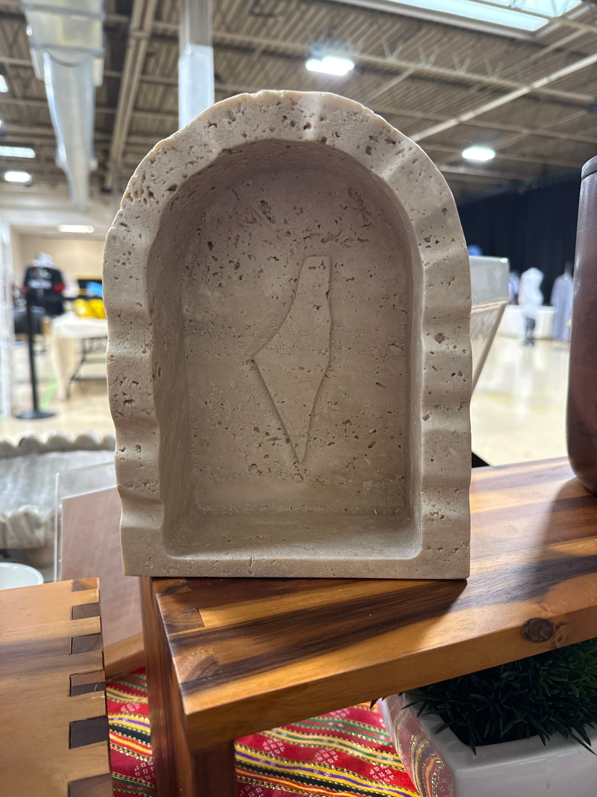 Hand-carved from authentic travertine, Echoes of the Land is more than a vessel—it’s a quiet statement of heritage and endurance. Each curve and natural pore tells the story of stone shaped by time, while the carved outline within stands as a symbol of identity and resilience.