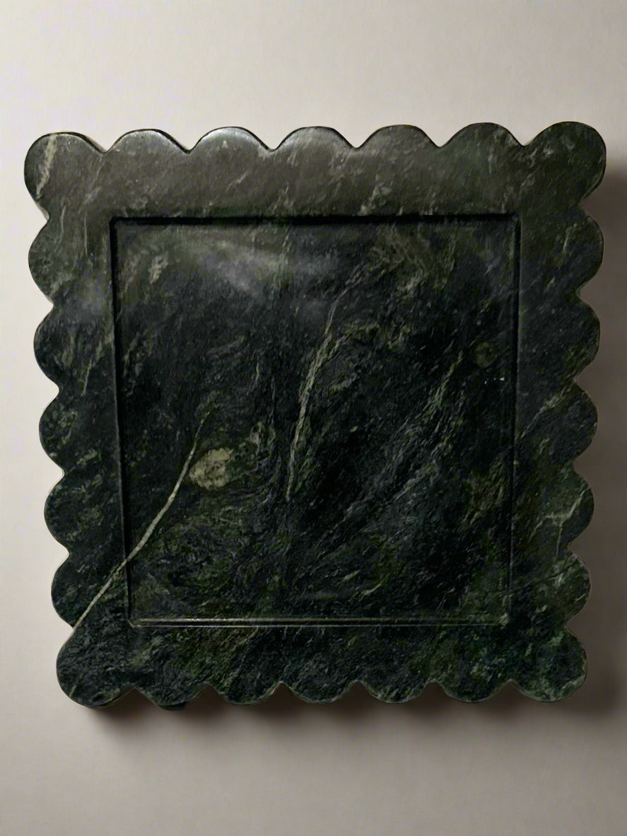 This scalloped-edge green marble tray blends functionality with artistic design, offering a timeless statement piece that’s as unique as your personal style.