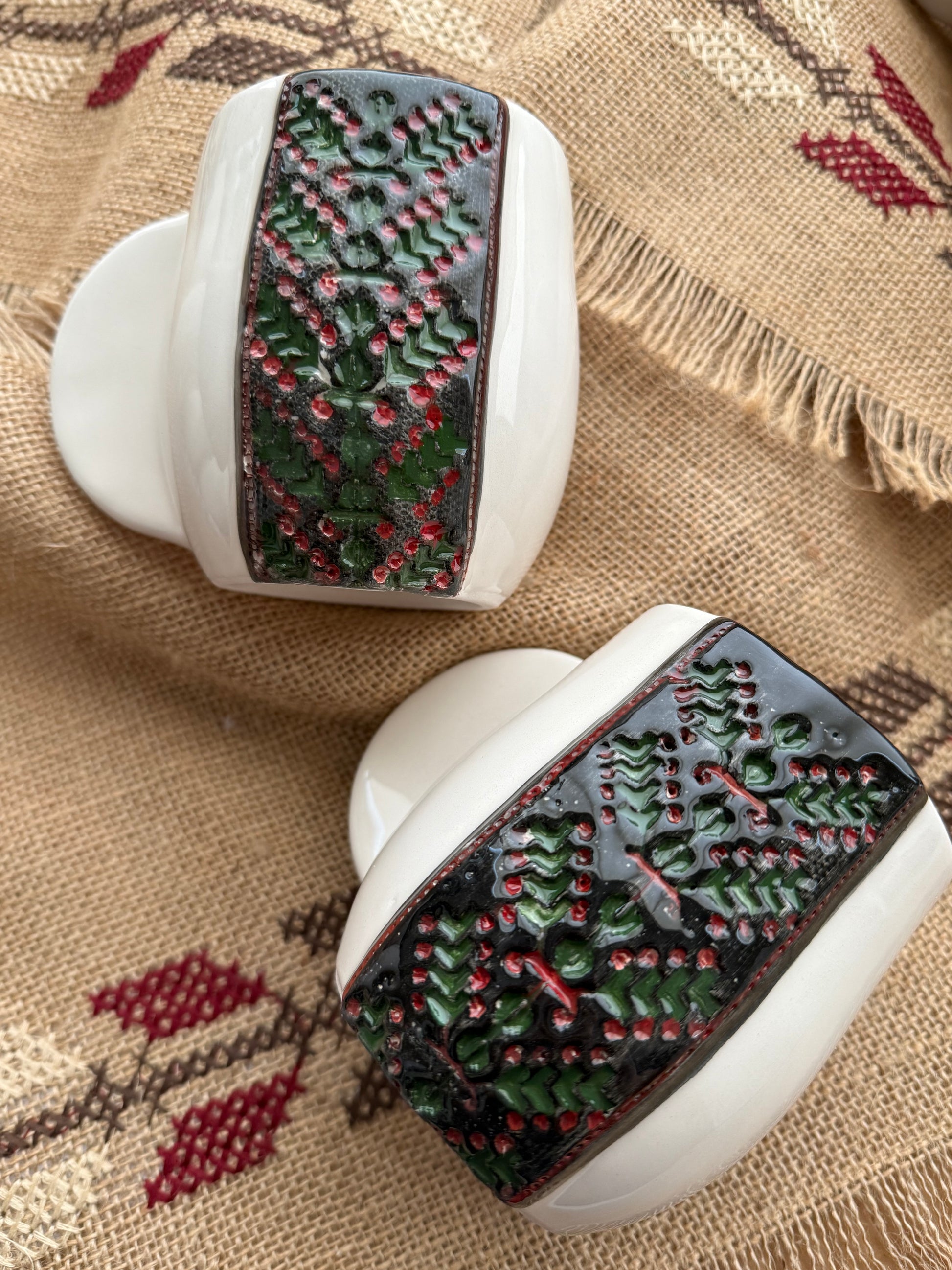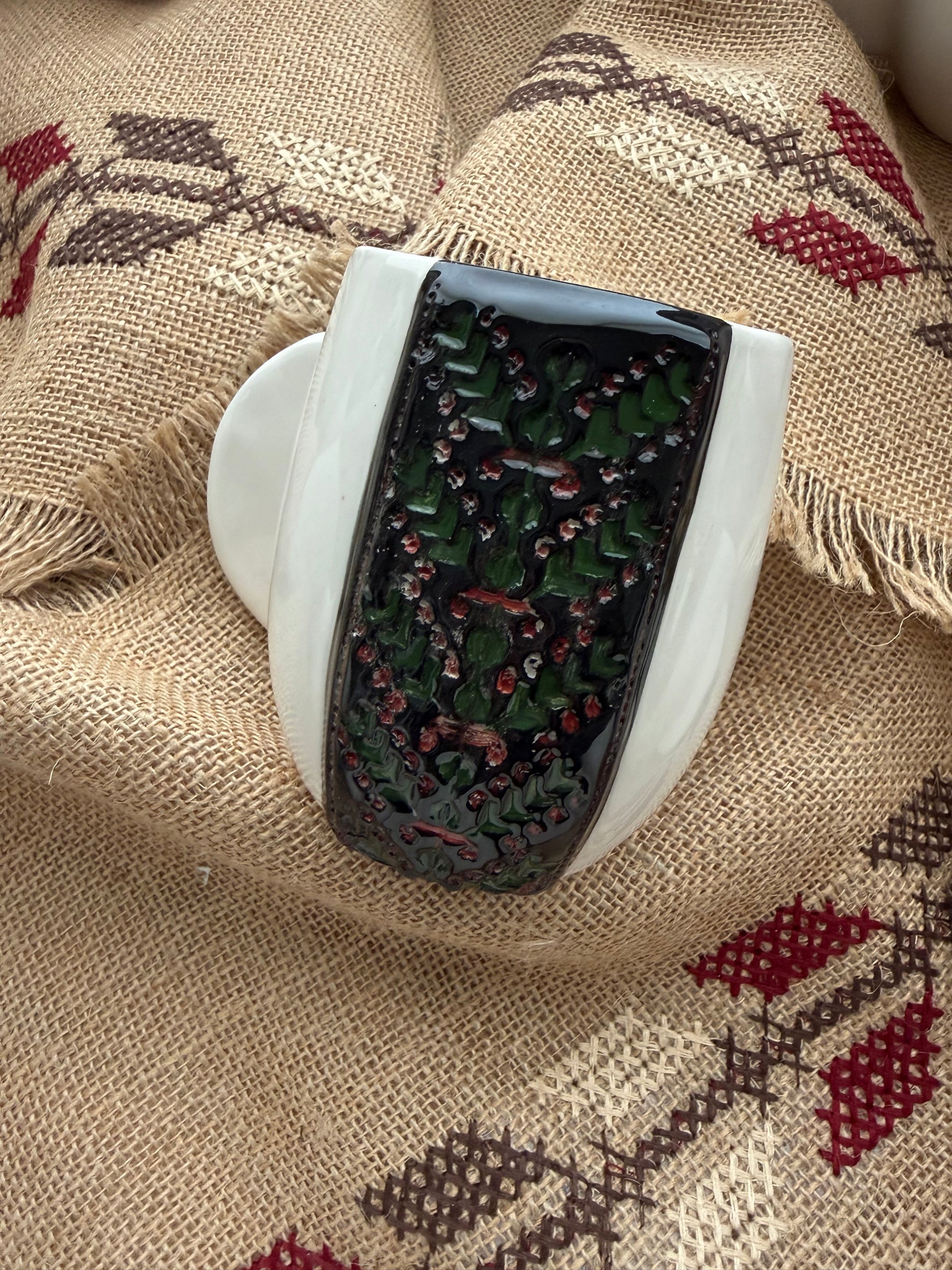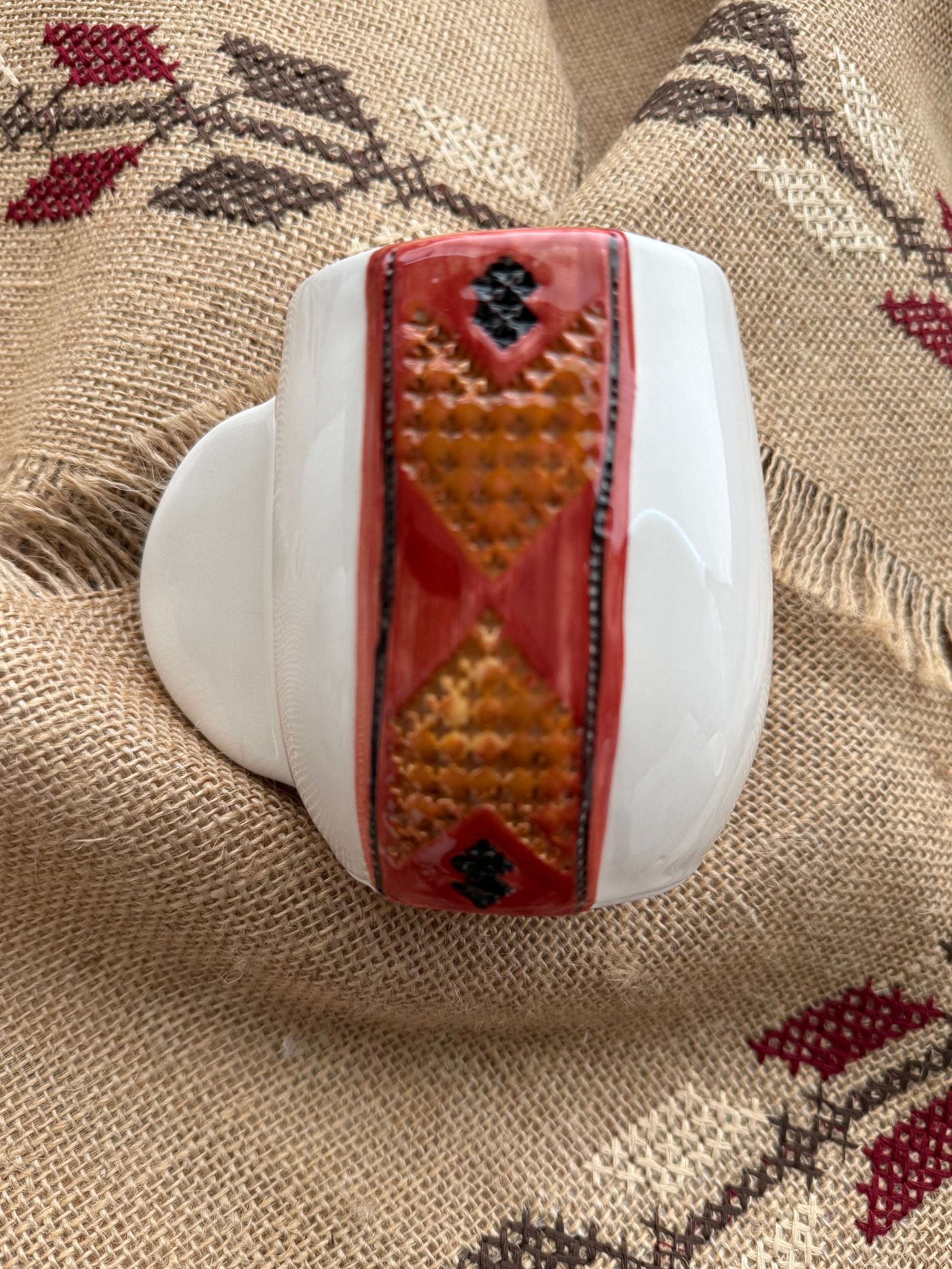 Our Tatreez Coffee Mugs pair Meem & Coco’s clean, sculptural design with hand-painted embroidery motifs passed down through generations.