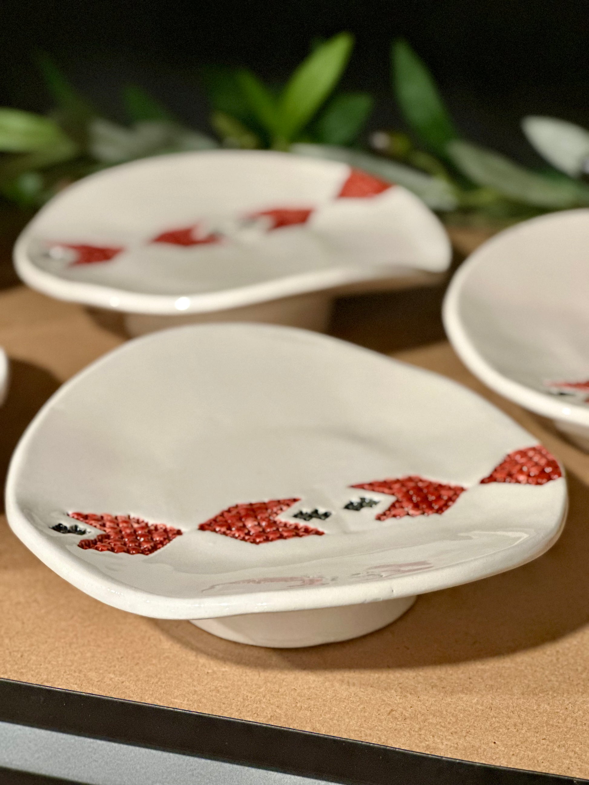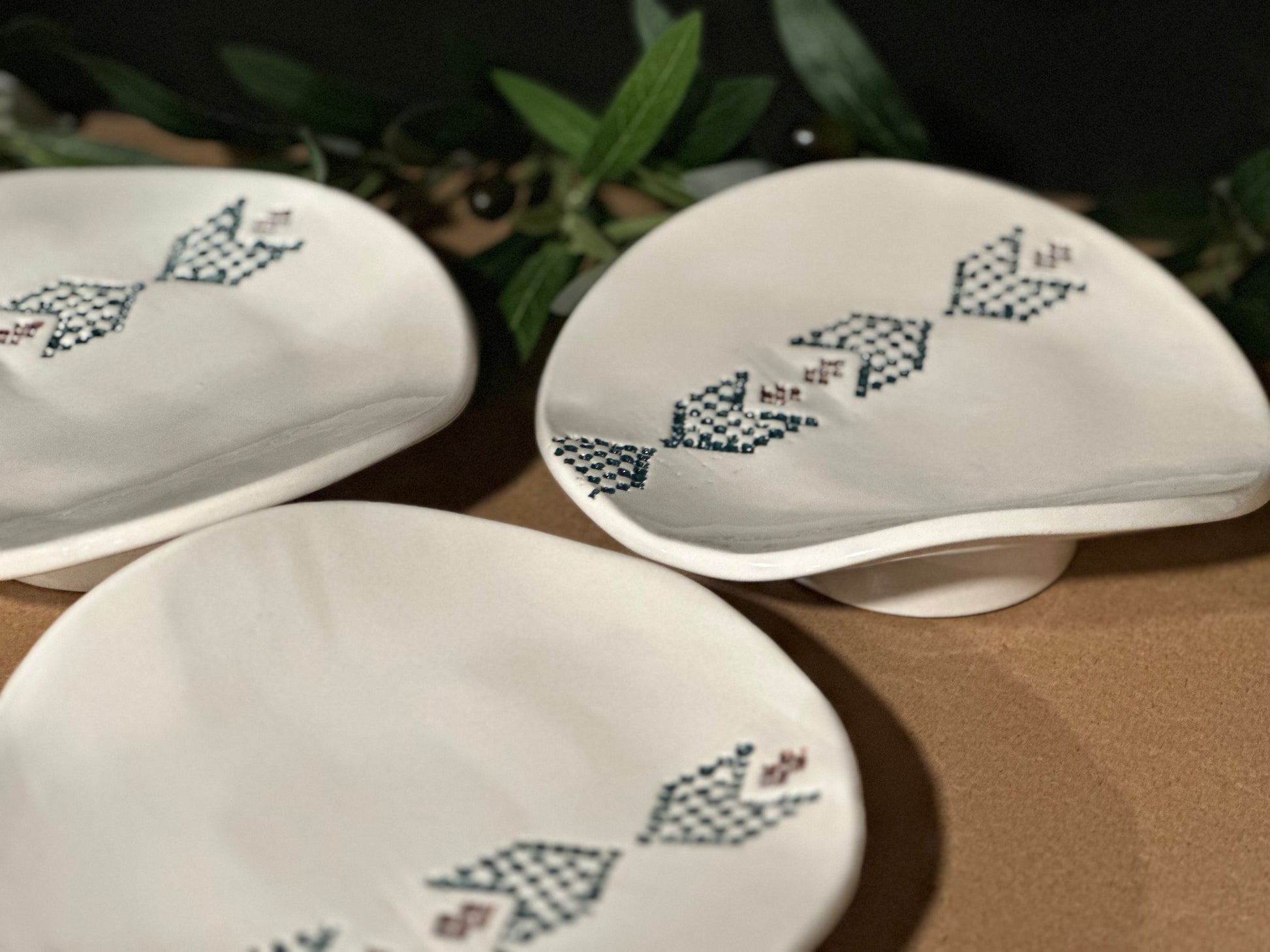 Our Wave Plates reimagine a classic form with a subtle wave and rounded base, creating a modern canvas for hand-painted tatreez motifs.
