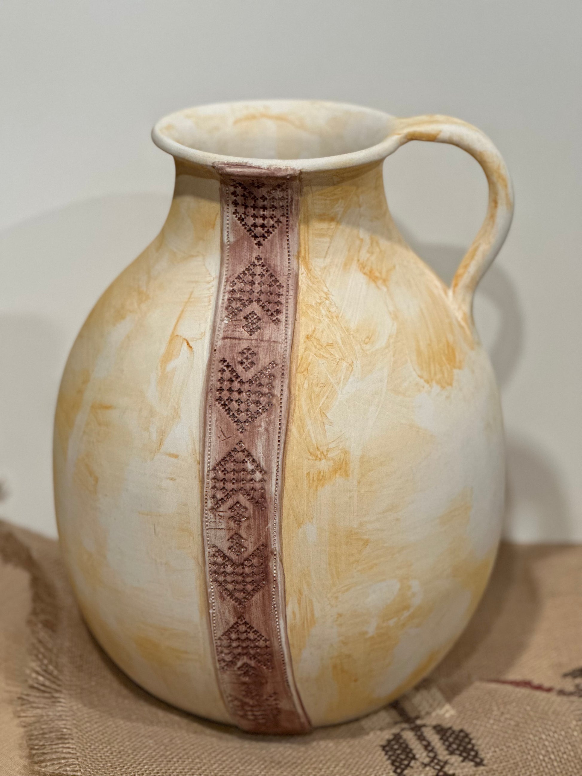Where heritage meets earth. Each vase in the Stitched in Clay collection is a one-of-a-kind piece—hand-formed and etched by artisans, inspired by the intricate geometry of tatreez, the traditional Palestinian embroidery.